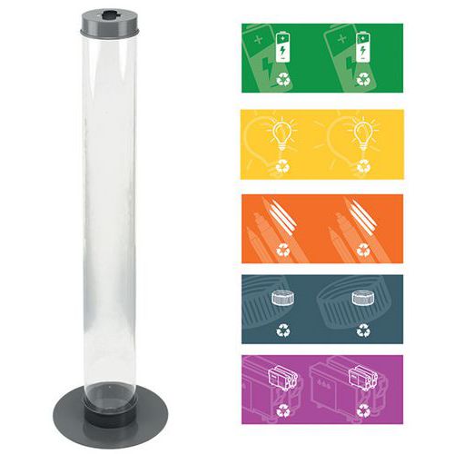 10 litran kierrätysjätekeräin, jossa on 5 tarraa