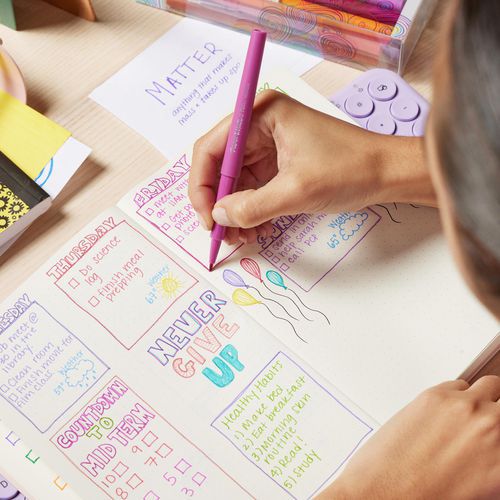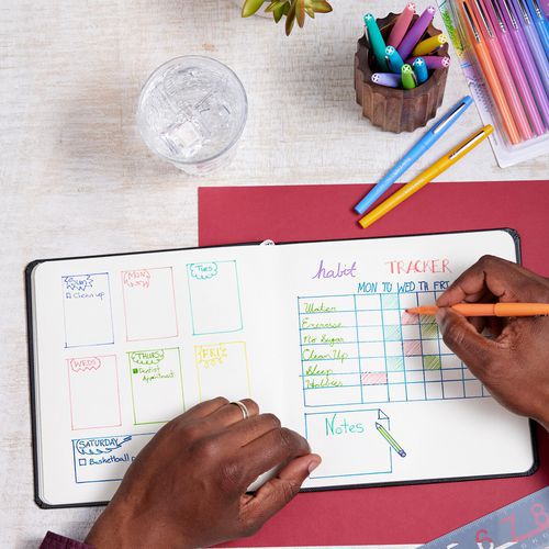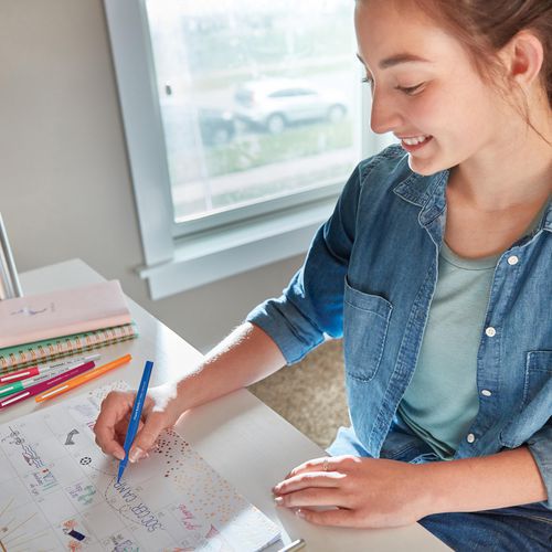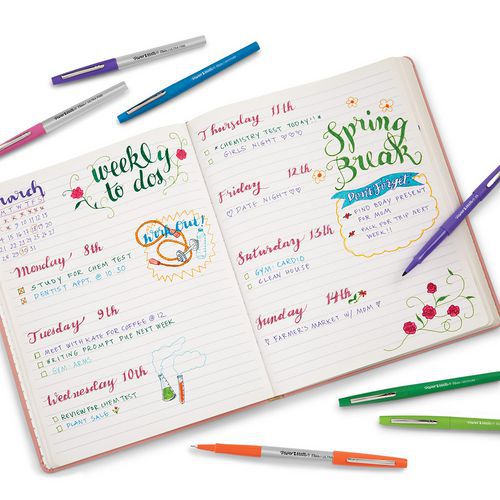 Paper Mate® Flair -värikynät, keskipiste (0,7 mm), turkoosi muste, 12 kappaleen laatikko. Vesipohjainen muste ei vuoda paperin läpi, joten tekstisi pysyy ehjänä. Kestää tahriintumista ja haalistumista, jolloin sivusta tulee kaunis, terävä.