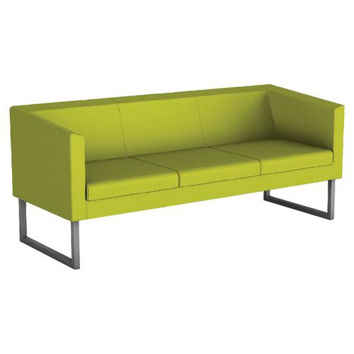 Sohva kolme istuinta. Ajaton muotoilu, saatavana kankaisena tai PVC-kuorena. Irrotettava vuori, joka pysyy paikallaan tarranauhalla ja vetoketjulla. Jalusta teräsputkia 30 x 30 mm huopatyynyillä. Käsinojan korkeus 33 cm. Epoksipinnoitettu alumiinimaalilla. Toimitetaan koottuna. Pinnoite paloluokituksen M1. Istuin irrotettavalla tyynyllä.