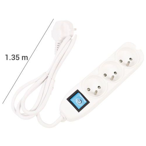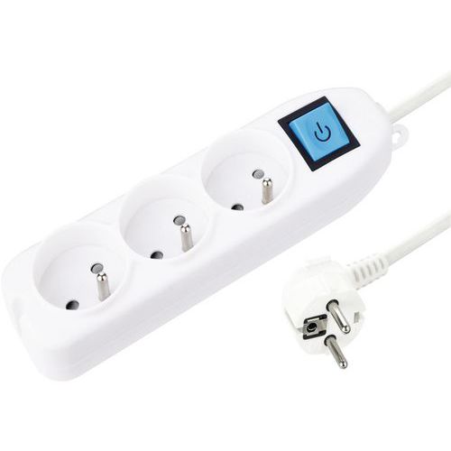 | Tavaranimike | 3-osainen jatkojohto ja kytkin, NF, 230 V, Virta: 16 A, Kytkin: kyllä, Pistorasioiden lukumäärä: 3 |