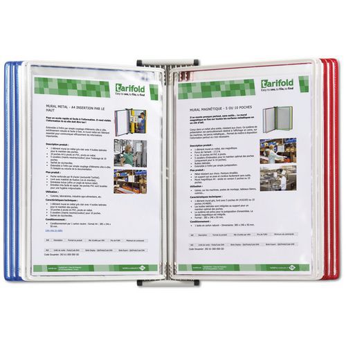 | Tavaranimike | A4 seinäsarja, jossa on 10 sinivalkopunaista taskua, Pussi, väri: Sekoitettu värit, Pussi, materiaali: PVC |