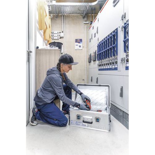 Akkukuljetuslaatikko K 470 Akku Safe Universal, 42 litraa, Materiaali: Alumiini, Kokonaiskorkeus: 250 mm