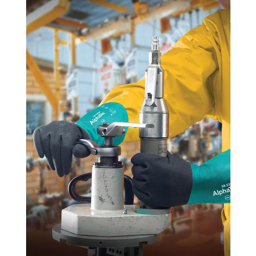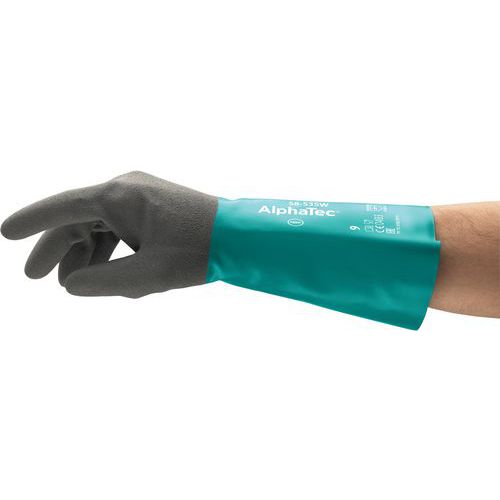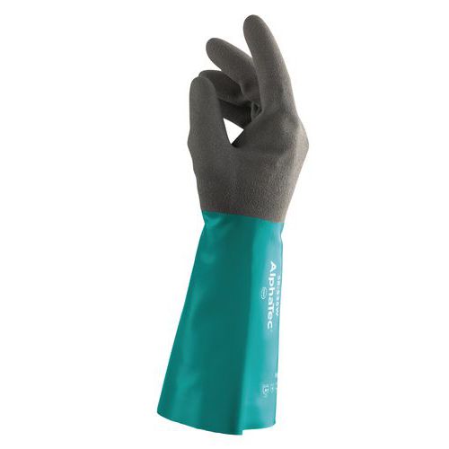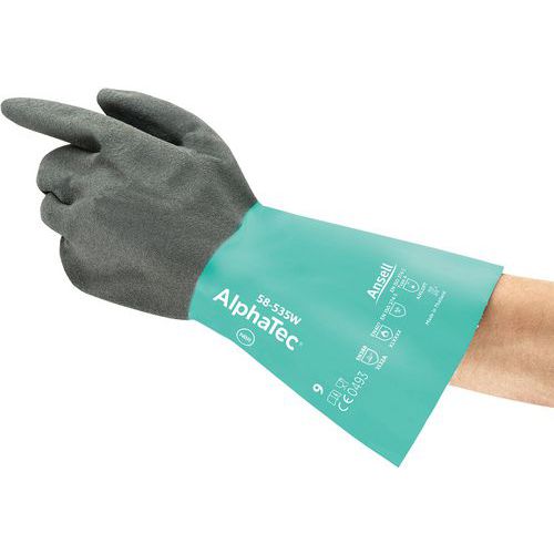 Alphatec 58-535 W -käsineet, Tekstiilimateriaali: Nitriili, Väri: Vihreä/harmaa, Hanskat koko: 9