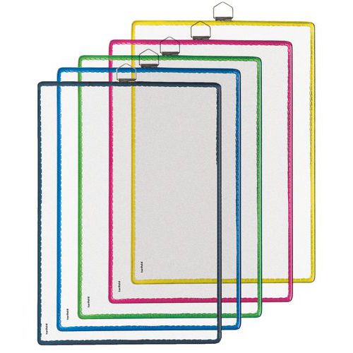 Kätevä ripustettava asiakirjatasku - erinomainen ratkaisu päivittäin tarvittavien tietojen säilyttämiseen. Värikäs ja heijastamaton kehys, läpinäkyvä tasku. Metallinen kiinnityssilmukka seinälle asentamista varten.
