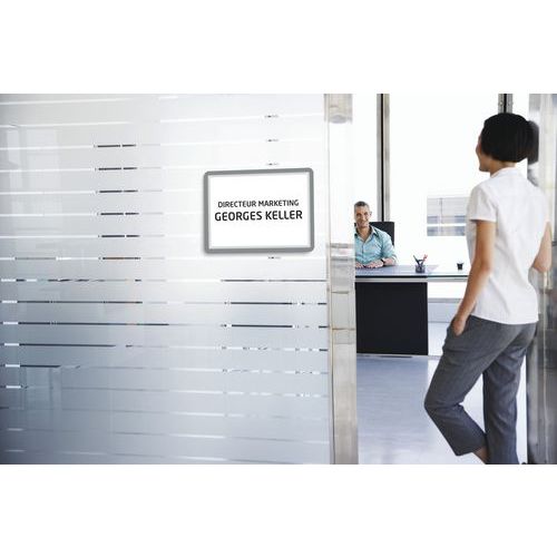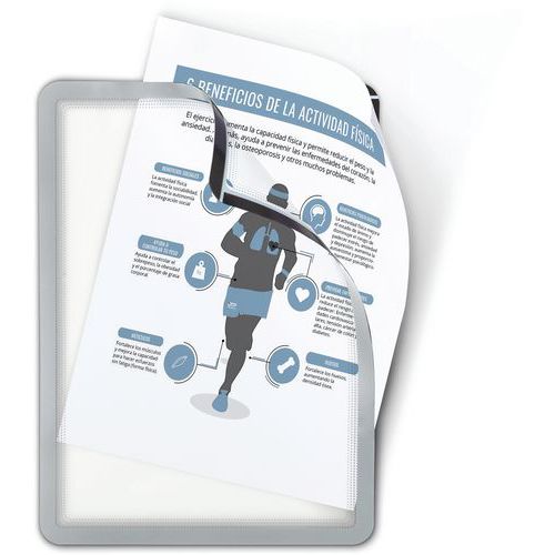 Kaksipuolinen toiminto lasinläpi kaksipuolisen kehyksen ansiosta. Siirrettävä, tarttuva pinta, joka ei jätä liimajälkiä. Ylhäällä oleva aukko helpottaa asiakirjan käsittelyä ja pitää sisällön hyvin paikallaan. Suljetaan magneettinauhalla, kehys tuo asiakirjan hyvin esille. “Easy Grip”-toiminnon ansiosta asiakirjan lisääminen ja vaihtaminen on helppoa. Karhea matta pinta parantaa luettavuutta. Pyöristetyt kulmat, kehys tuo asiankirjan hyvin esille. Voidaan käyttää vaaka- tai pystysuorassa. Älä altista Magnetoa pitkäaikaiselle suoralle kuumuudelle (aurinko, valo jne.). Valmistettu EU:ssa
