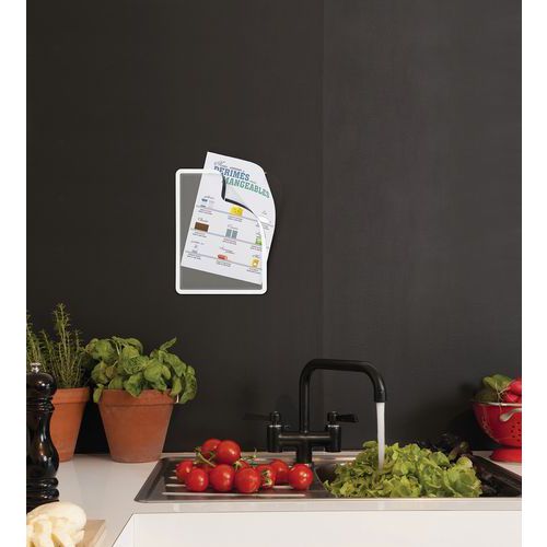 Kaksipuolinen toiminto lasinläpi kaksipuolisen kehyksen ansiosta. Siirrettävä, tarttuva pinta, joka ei jätä liimajälkiä. Ylhäällä oleva aukko helpottaa asiakirjan käsittelyä ja pitää sisällön hyvin paikallaan. Suljetaan magneettinauhalla, kehys tuo asiakirjan hyvin esille. “Easy Grip”-toiminnon ansiosta asiakirjan lisääminen ja vaihtaminen on helppoa. Karhea matta pinta parantaa luettavuutta. Pyöristetyt kulmat, kehys tuo asiankirjan hyvin esille. Voidaan käyttää vaaka- tai pystysuorassa. Älä altista Magnetoa pitkäaikaiselle suoralle kuumuudelle (aurinko, valo jne.).