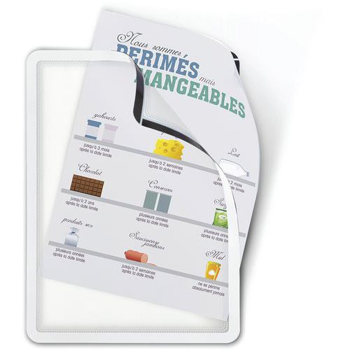 Kaksipuolinen toiminto lasinläpi kaksipuolisen kehyksen ansiosta. Siirrettävä, tarttuva pinta, joka ei jätä liimajälkiä. Ylhäällä oleva aukko helpottaa asiakirjan käsittelyä ja pitää sisällön hyvin paikallaan. Suljetaan magneettinauhalla, kehys tuo asiakirjan hyvin esille. “Easy Grip”-toiminnon ansiosta asiakirjan lisääminen ja vaihtaminen on helppoa. Karhea matta pinta parantaa luettavuutta. Pyöristetyt kulmat, kehys tuo asiankirjan hyvin esille. Voidaan käyttää vaaka- tai pystysuorassa. Älä altista Magnetoa pitkäaikaiselle suoralle kuumuudelle (aurinko, valo jne.). Valmistettu EU:ssa