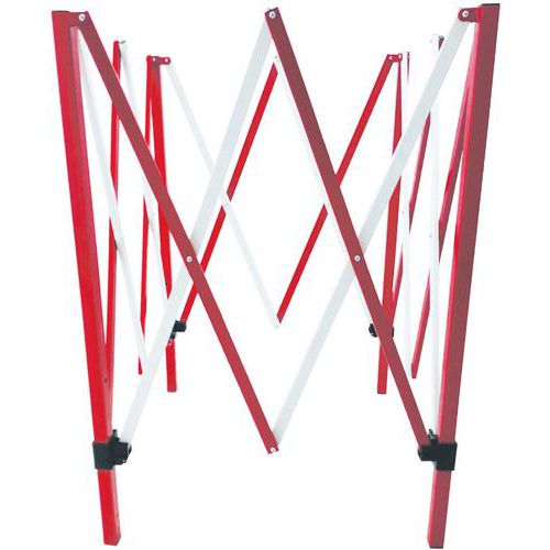 Laajennettava este sisä- ja ulkokäyttöön. Valmistettu sinkitystä teräksestä, punavalkoiset osiot takaavat hyvän näkyvyyden. Tangot on niitattu toisiinsa, mikä tekee rakenteesta joustavan ja tukevan.
