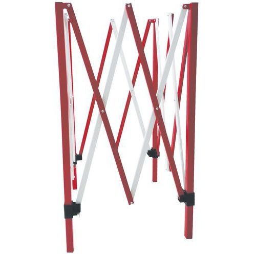 Laajennettava este sisä- ja ulkokäyttöön. Valmistettu sinkitystä teräksestä, punavalkoiset osiot takaavat hyvän näkyvyyden. Tangot on niitattu toisiinsa, mikä tekee rakenteesta joustavan ja tukevan.