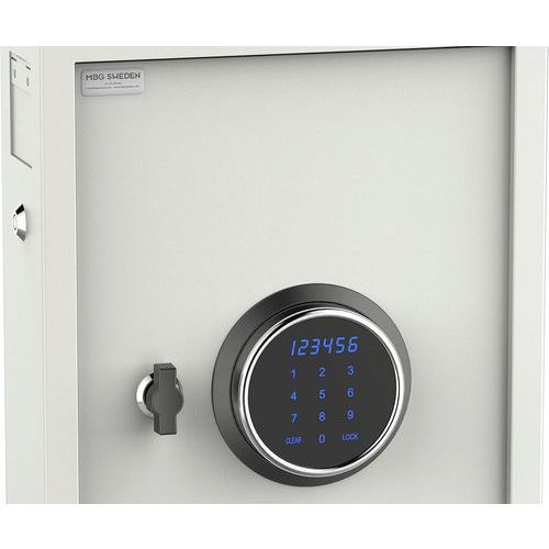 - Avainkaappi MBG:ssa on toiminnallinen elektroninen koodilukko kosketusnäytöllä sekä hätälukko avaimella.