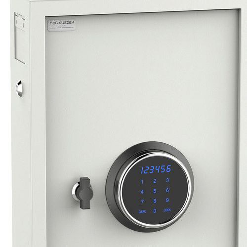 - Avainkaappi MBG:ssa on toiminnallinen elektroninen koodilukko kosketusnäytöllä sekä hätälukko avaimella.