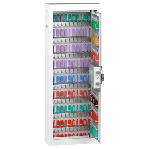 - Kosketusnäytöllisellä koodilukolla varustettu avainkaappi MBG Swedeniltä on kestävä ja vankka kaappi, joka mahtuu 22-150 avainta.