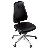 Työtuoli, joka on kokonaan verhoiltu mustalla kestävä nahalla ja kromatulla jalustalla.