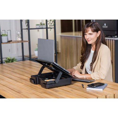 Jalustassa on 5 korkeussäätöä, jotka takaavat hyvän ergonomisen asennon kannettavan tietokoneen näyttöä katseltaessa.