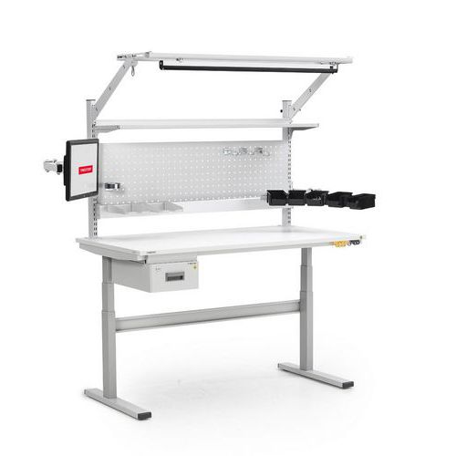 - Korkeus- ja syvyyssäädettävä C-profiilijalusta, joka kiinnitetään pylväisiin ja jota käytetään valaistukseen ja sähkötyökaluihin.