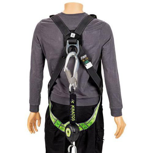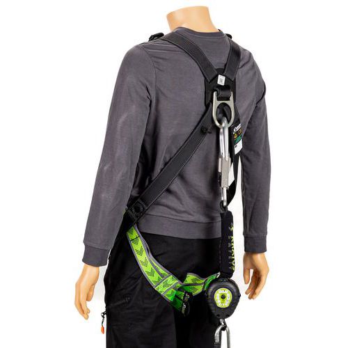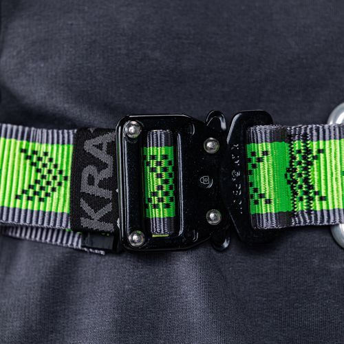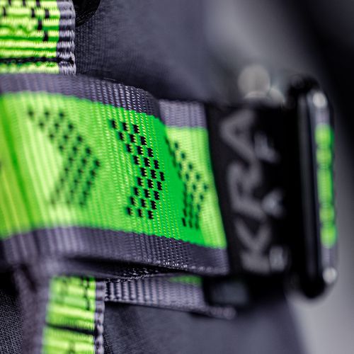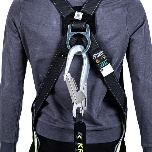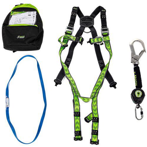 Pakkaus sisältää: 1 erityiset rakennustelineiden valjaat, 1 itsevetäytyvä putoamisenestohihna 2 m, 1 ankkurirengas nauhassa 20 mm, pituus 0,80 m, 1 reppu ulkoisella vetoketjutaskulla, tilavuus 12 l.