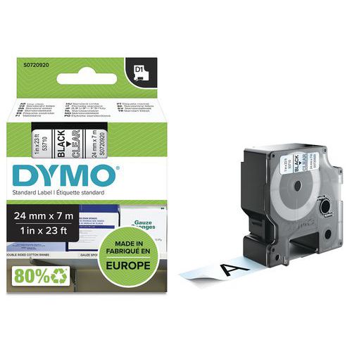 D1-tarrakasetti, leveys 24 mm – Dymo, Tausta, väri: Läpinäkyvä, Tyyppi: S0720920, Nauha, pituus: 7 m