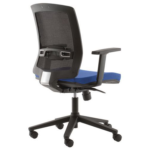 Työtuoli, jossa on erittäin mukava selkänoja verkkokangasta ja käsinojat. Selkänoja, jossa korkeussäädettävä ristiselän tuki. Istuimen ja selkänojan synkroninen liike, lukittavissa 4 asentoon.