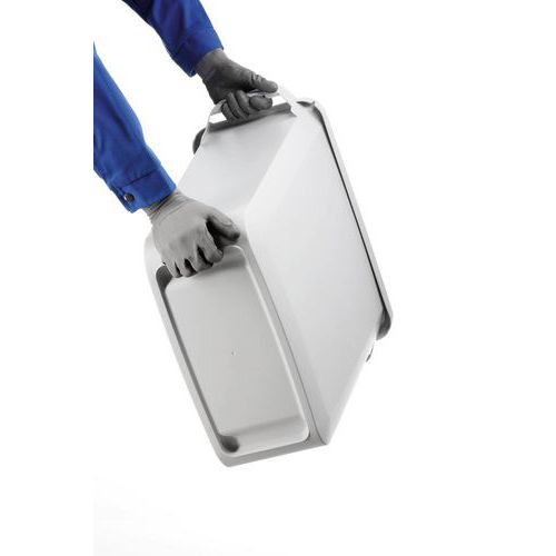 Käytännöllinen muovinen jäteastia moniin käyttötarkoituksiin, varustettu kantokahvoilla.