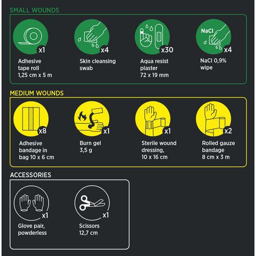 | Tavaranimike | Ensiapulaukku, Standard, Väri: Musta, Leveys: 175 mm, Pituudet: 190 mm, Syvyys: 70 mm |