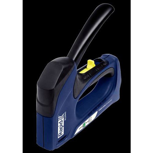 | Tavaranimike | Ergonominen niittipistooli, Laddare, Kapasiteetti: 84, Tuotteen paino: 600 g, Materiaalit: Alumiini / Teräs |