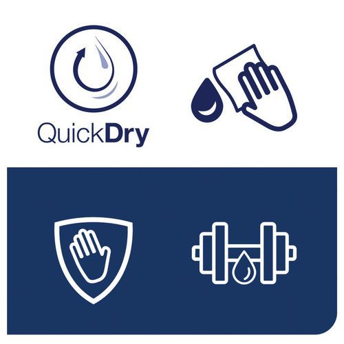 Paperi, jolla on erinomainen imukyky. QuickDry-laatu: vahvempi ja imukykyisempi kuin tavallinen paperi. Suojaa käsiä lämmöltä ja lialta. Erittäin tehokas öljyn pyyhkimisessä. Erittäin vahva, jopa märkänä. Ergonominen annostelijarasia, helppo kuljettaa, avata ja hävittää.