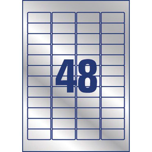 Erittäin vahva metallinen polyesterietiketti, Lkm, tarroja/arkkeja: 48, Lkm, tarroja: 960, Tarra
