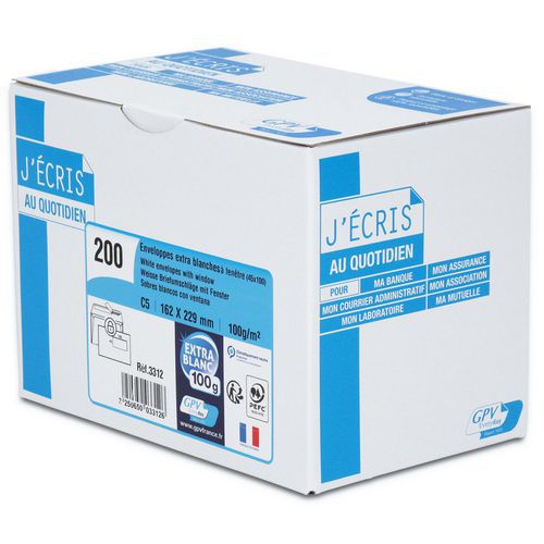 Erittäin valkoinen kirjekuori ikkunalla 45x100 mm - 200 kpl pakkaus - GPV