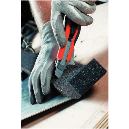 | Tavaranimike | Katkaisuteräveitsi, terän leveys 18 mm, Terä, materiaali: Ruostumaton teräs, Käyttö: Leikkaaminen, Runko |
