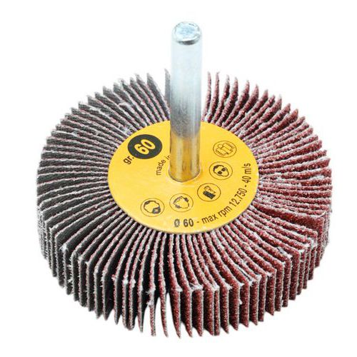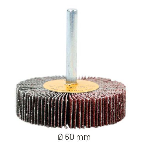 Flap wheel -läppälaikka, halkaisija 60 mm − Manutan Varren varassa oleva hiomalaikka useiden materiaalien puhdistukseen ja viimeistelyyn. Kiinnitetään sähkö- tai paineilmakäyttöisiin käsityökaluihin. Joustava ja kevyt kuorintaan, puhdistukseen ja viimeistelytöihin.