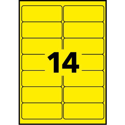 Fluoresoiva irrotettava etiketti, lasertulostin, Lkm, tarroja/arkkeja: 14, Lkm, tarroja: 350, Tarra