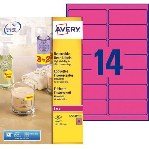 Fluoresoiva irrotettava etiketti, lasertulostin - Avery