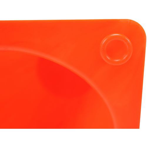 | Tavaranimike | Fluoresoiva turvakartio, Väri: Punainen, Korkeus: 300 mm, Tuotteen paino: 0.35 kg, Materiaalit: Muovi |