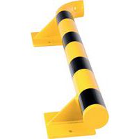 Kestävästä teräksestä valmistettu seinään kiinnitettävä iskua vaimentava puskuri.  Hyvä näkyvyys keltamustan värimaailman ansiosta.  Galvanoitu teräs parantaa kulutuksen ja korroosion kestävyyttä.  Helppo asentaa kytkettävän asennuslevyn ansiosta.   Pohjalevy 195 x 120 mm.