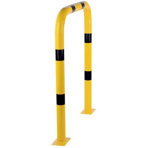 Teräksinen voimakaari, jota käytetään suojaamaan laitteita tai koneita käsittelylaitteiden mahdollisilta iskuilta. Hyvä näkyvyys kaksisävyisen keltaisen/mustan värin ansiosta. Sopii sekä sisä- että ulkokäyttöön. Asennustarvikkeet eivät sisälly toimitukseen. TÜV-sertifikaatti.