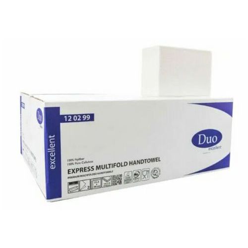 | Tavaranimike | Handduk Duo Express, Väri: Valkoinen, Muoto, leveys: 215 mm, Muoto, pituus: 360 mm, Lkm, arkkeja/pakkaus: 150 |