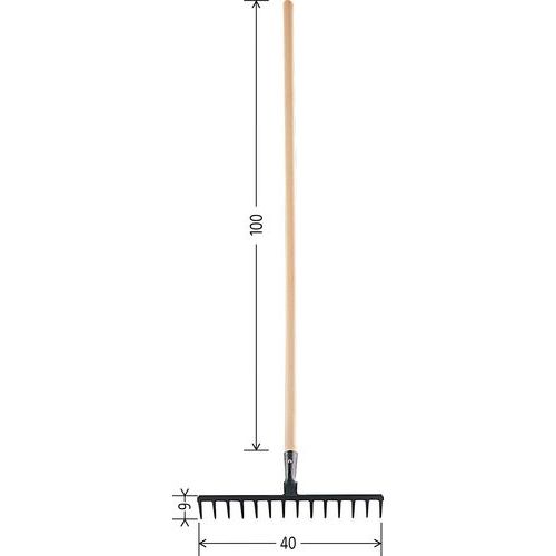 | Tavaranimike | Harava 14 piikkiä, Leveys: 40 cm, Kahvan pituus: 100 cm, Hampaiden lukumäärä: 14, Paino: 1.3 kg |