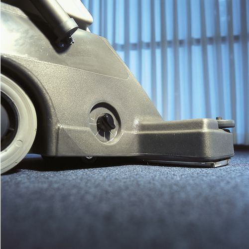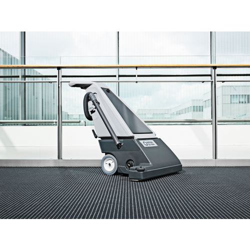 Nilfisk GU 700A on tehokas pystymallinen harjatelaimuri suurten tekstiililattioiden tehokkaaseen puhdistukseen.