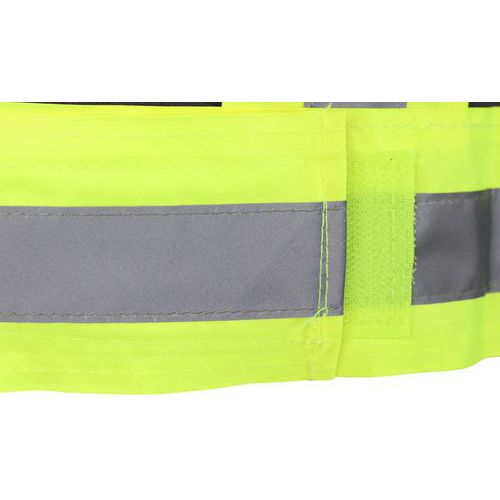 Varustettu 3 cm leveillä heijastinnauhoilla näkyvyyden parantamiseksi.