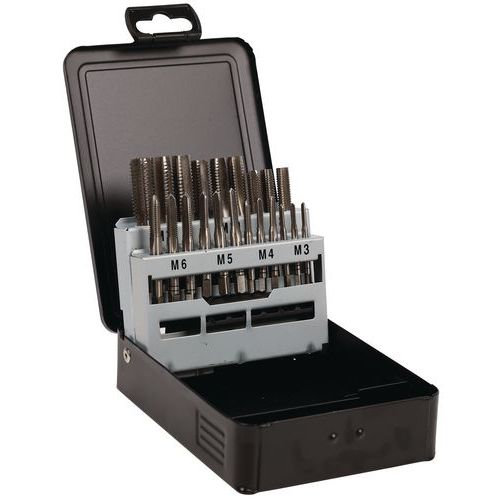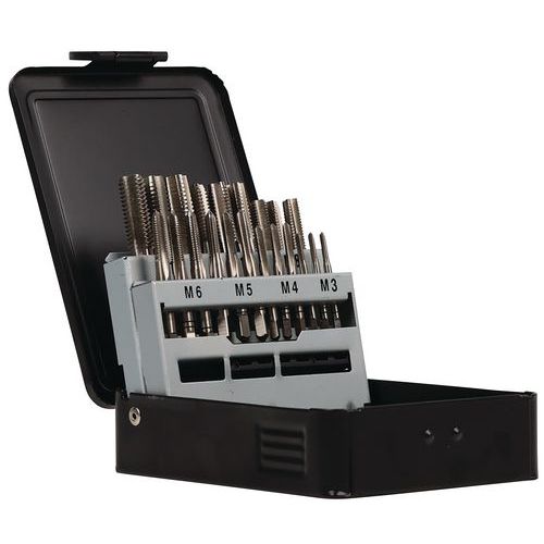 | Tavaranimike | HSS-käsikierretappisarja, 21 osaa, M3M12, Käyttö: Poraaminen, Materiaali: Teräs |
