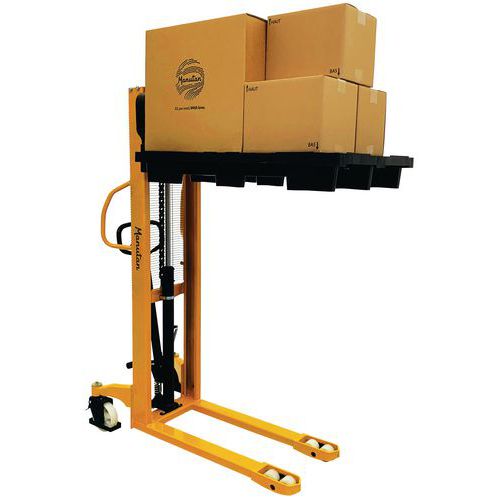 | Tavaranimike | Hydraulinen pinoaja 1000 kg, Kapasiteetti: 1000 kg, Nostokorkeus maks: 1600 mm, Kokonaispituus: 1650 mm |