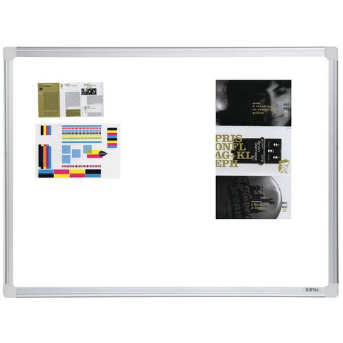 - Tarttuvapintainen valkotaulu, johon voi kiinnittää papereita yhä uudelleen ja uudelleen. Alumiinikehys.