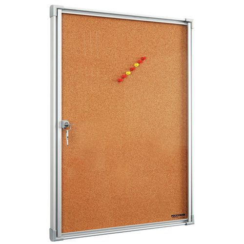 - Koristeellinen pienikokoinen ilmoitustaulukaappi 1-6 A4-sivulle. Kehys anodisoitua alumiinia, muovikulmat. Ovi pleksilasia, turvalukko. Taustalevy korkkia.