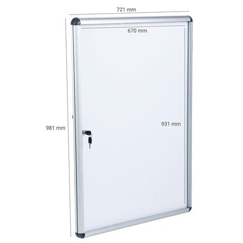 Lukittava magneettipohjainen ilmoituskaappi seinälle. Sopii ihanteellisesti sisäkäyttöön ilmoitustauluna tai sisääntuloalueille. Laaja kokovalikoima. Valmistettu akryylilevystä ja kierrätetystä alumiinikehyksestä. Toimitukseen sisältyy 2 avainta. Valmistettu EU: ssa Takuu (vuosia) : 10 vuotta