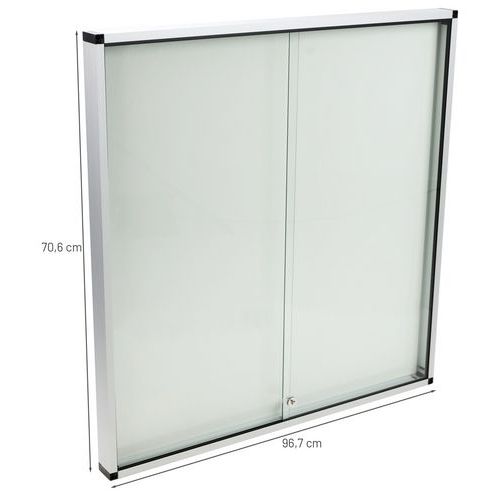 Lukittava magneettipohjainen ilmoituskaappi seinälle. Esittelyvitriini sisäkäyttöön, 2 ovea. Vankka, turvallinen ja kevyt rakenne. Magneettinen pinta lakattua terästä. Akryylilevy takaa esillä olevien materiaalien erinomaisen näkyvyyden. Alumiinikehys. 100% kierrätetty ja kierrätettävä. Toimitukseen sisältyy 2 avainta. Valmistettu EU:ssa Takuu (vuosia) : 10 vuotta