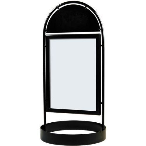 - Ilmoitusteline keskeisille paikoille. Rengasmainen jalusta helpottaa heikkonäköisten kulkijoiden liikkumista. Runko tukevaa jauhemaalattua teräsputkea. Telineessä on alumiiniset 40 mm painokehys, joka helpottaa viestimateriaalin vaihtoa. Soikea huomioalue yrityksen logolle. Monet kunnat ovat hyväksyneet tämän telineen toimintarajoitteisten liikkumista helpottavaksi ilmoitusvälineeksi. Jalka, Ø: 630 mm.