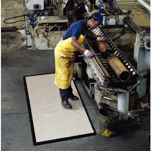 - Kestää öljyjä ja voimakkaita teollisia nesteitä, sopii käytettäväksi työpisteiden alla.