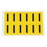 - Mustat luvut ja kirjaimet keltaisella taustalla.