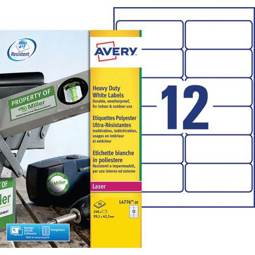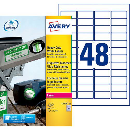 Itseliimautuva erittäin kestävä valkoinen etiketti - lasertulostus - Avery Itseliimautuva erittäin kestävä valkoinen etiketti - lasertulostus - Avery