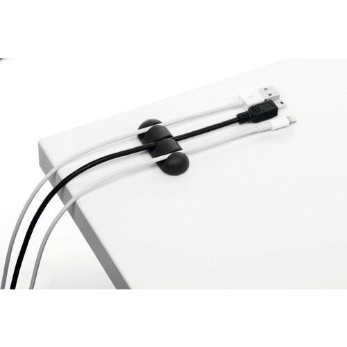 Sarja pyöristettyjä kaapelipidikkeitä pehmeästä muovista, sisältää pidikkeet 1, 2, 3 ja 4 USB- tai puhelinkaapeleille, joiden läpimitta on enintään 5 mm.